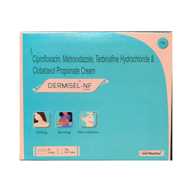 Dermisel-NF Cream is only meant for external use and should be used as advised by your doctor. A thin layer of the medicine should be applied only to the affected areas of the skin with clean and dry hands. If it gets into your eyes, nose, mouth or vagina rinse with water. It may take several days to weeks for your symptoms to improve, but you should keep using this medicine regularly. The course of the treatment should be completed to ensure better efficacy of the medicine. If your condition does not improve or gets worse, you should talk to your doctor.