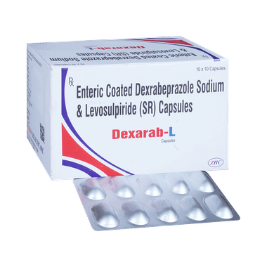 Dexarab-L Capsule SR is a prescription medicine used mainly in the treatment of stomach ulcers. It works by increasing some chemical messengers that prevent acid reflux. It also reduces the amount of acid in the stomach which helps to provide relief in acid-related indigestion.Dexarab-L Capsule SR should be taken with or without food. However, it is advised to take it at the same time each day as this helps to maintain a consistent level of medicine in the body. Take this medicine in the dose and duration advised by your doctor. If you miss a dose of this medicine, take it as soon as you remember. Avoid the use of alcohol as it may decrease the effect.