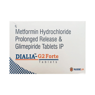 Dialia-G2 Forte Tablet PR is a combination of two medicines: glimepiride and metformin. This medicine is used in the treatment of type 2 diabetes mellitus (DM). It improves blood glucose levels in adults when taken along with a proper diet and regular exercise. Glimepiride lowers the blood glucose levels by increasing the release of insulin from the pancreas. Metformin works by lowering glucose production in the liver and improving insulin sensitivity. This combination is not indicated for the treatment of type 1 DM.