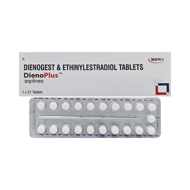 Dienoplus Tablet is used to prevent pregnancy. It is a birth control pill that contains estrogen and progestin hormones. It works by stopping the complete development of a woman's egg each month.