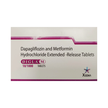 Digla M 10/1000 Tablet ER may be taken with food. Take it at the same time every day; this will help you remember to take it. Your doctor will decide the dose. Do not stop taking it without asking your doctor. If you do, your blood sugar levels may increase and put you at risk of serious complications like kidney damage and blindness. This medicine is only part of a treatment program that should include a healthy diet, regular exercise, and weight reduction as advised by your doctor.
