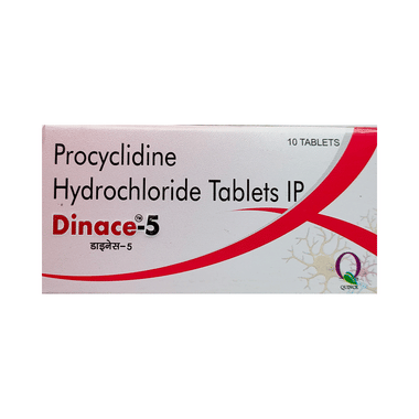 Dinace 5 Tablet is a prescription medicine used in the treatment of Parkinson's disease and drug-induced abnormal movements. It helps by improving muscle control and reducing the stiffness of the muscles so that they can move easily.