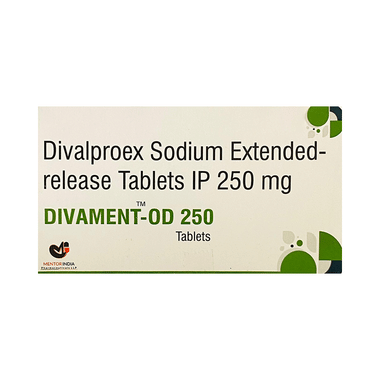 Divament-OD 250 Tablet is a medication used to treat epilepsy, seizures, bipolar disorder, mania, trigeminal neuralgia, and migraines. It works by stabilizing brain activity. Forever use it under medical supervision for safe and effective treatment.