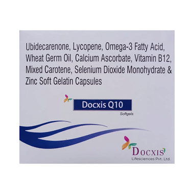 Find out detailed description, uses, directions of use, side effects, warnings and precautions, frequently asked questions about Docxis Q10 Softgel Capsule