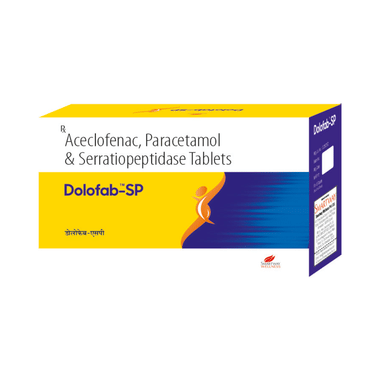 Dolofab-SP Tablet is a combination medicine that relieves muscle, joint, and postoperative pain. It effectively alleviates pain and inflammation in conditions like rheumatoid arthritis, ankylosing spondylitis, and osteoarthritis.