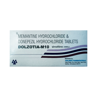 Dolzotia-M10 Tablet is a prescription medicine used to treat Alzheimer's disease. It helps to slow down the progression of moderate to severe Alzheimer's by improving memory and thinking. It also increases the levels of a chemical messenger involved in the transmission of nerve signals.