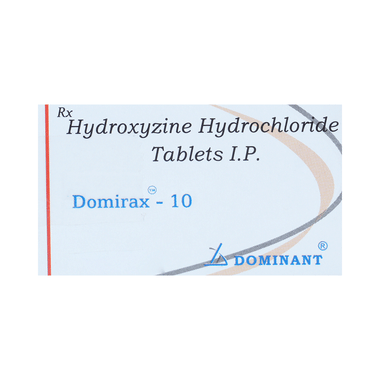 Domirax 10 Tablet belongs to a group of medicines called antihistamines, which means it is an anti-allergy medicine. It is used to treat various allergic skin conditions (e.g., eczema, dermatitis, allergies, rash). Domirax 10 Tablet effectively reduces symptoms such as swelling, itching, and redness associated with such conditions. It also helps relieve excessive anxiety or worry in people who are supposed to undergo surgery or have recently undergone surgery. It calms the brain and makes such people feel better.