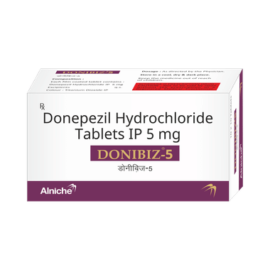 Donibiz 5 Tablet is used to treat mild to moderate dementia in Alzheimer’s disease, a progressive illness that gradually affects memory and thinking. It does not cure this illness but may help improve memory, awareness, and other symptoms.