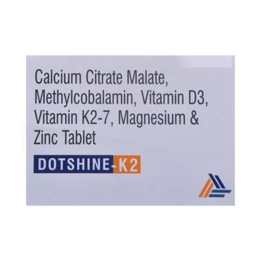 Composition: Calcium Citrate Malate (1250mg) + Magnesium Oxide (50mg) + Methylcobalamin (1500mcg) + Vitamin D3 (1000IU) + Vitamin K2-7 (90mcg) + Zinc Oxide (15mg)