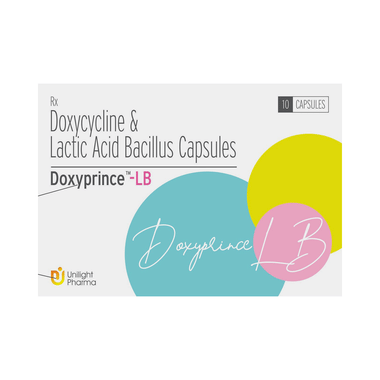 Doxyprince-LB Capsule is a prescription medicine and it is advised to take it as per the doctor's advice. It can be taken with or without food, but it must be taken at a fixed time to ensure better efficacy. Do not consume more than the recommended dose, as this may have harmful effects on your body. If you miss a dose, take it as soon as you remember. The course of the treatment must be completed even if you feel better. Sudden discontinuation of the treatment may affect the potency of the medicine.
