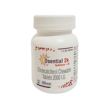 Dsential 2K Chewable Tablet should be taken as directed by your doctor. It is best taken with or after food, as this helps your body absorb it, and you should take it regularly to get the most benefits. If you are using it to treat osteoporosis, you will also be prescribed other medicines. This medicine may be only part of a complete treatment program that includes making changes to your diet and taking calcium and vitamin supplements. Absorb about the foods you should eat to ensure you get enough calcium and vitamin D.