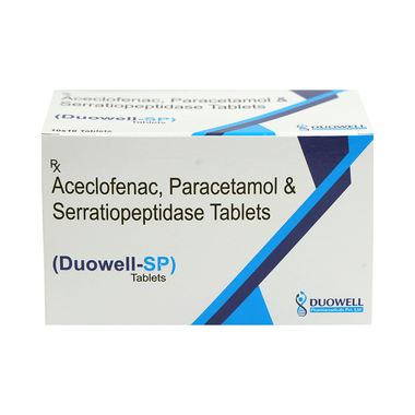 Duowell-SP Tablet is a combination medicine that relieves muscle, joint, and postoperative pain. It effectively alleviates pain and inflammation in conditions like rheumatoid arthritis, ankylosing spondylitis, and osteoarthritis.