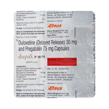 Find out detailed description, uses, directions of use, side effects, warnings and precautions, frequently asked questions about Dupax P 30/75 Capsule DR