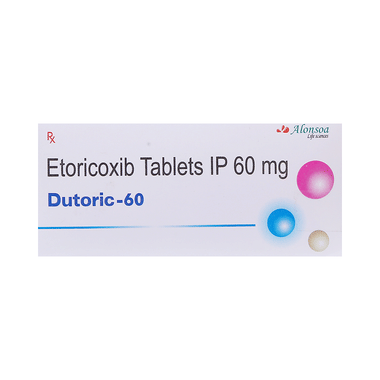 Dutoric 60mg Tablet is a pain-relieving medicine. It is used for relieving moderate pain and swelling of joints associated with different forms of gout and arthritis. It is also used for short-term treatment of moderate pain after dental surgery.