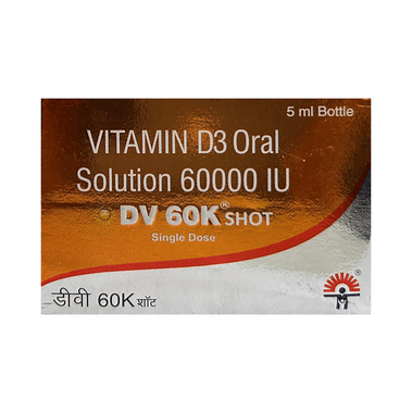 DV 60K Shot Single Dose should be taken as directed by your doctor. It is best taken with or after food, as this helps your body absorb it, and you should take it regularly to get the most benefits. If you are using it to treat osteoporosis, you will also be prescribed other medicines. This medicine may be only part of a complete treatment program that includes making changes to your diet and taking calcium and vitamin supplements. Absorb about the foods you should eat to ensure you get enough calcium and vitamin D.