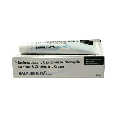 Eaupure-Insta Cream is a combination medicine that is used to treat various types of skin infections. It minimizes symptoms of inflammation such as redness, swelling, and itching. It also has antimicrobial action against infection-causing microorganisms.