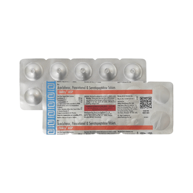It combines three medicines: Aceclofenac, Paracetamol, and Serratiopeptidase. This medication relieves pain and inflammation by lowering the levels of chemical substances in the body that cause them.