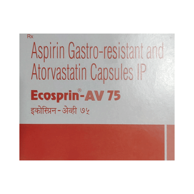 Ecosprin-AV 75 Capsule should be taken with food to avoid stomach upset. You should take it regularly at evenly spaced intervals as per the schedule prescribed by your doctor. Taking it at the same time every day will help you remember to take it. The dose and duration of treatment will depend on what you are being treated for. Do not stop taking it until you have finished the complete course, even when you feel better. Lifestyle changes like a low-fat diet, exercise, and not smoking may help this medicine work better.