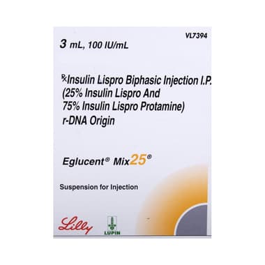 Eglucent Mix 25 Suspension for Injection (3ml Each) is normally prescribed along with a long-acting type of insulin or other diabetes medicines. Your doctor or nurse will teach you the correct way of injecting it under the skin. It should be taken 15 minutes before a meal. Do not stop taking it unless your doctor tells you to.