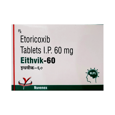 Eithvik 60 Tablet is a pain-relieving medicine. It is used for relieving moderate pain and swelling of joints associated with different forms of gout and arthritis. It is also used for short-term treatment of moderate pain after dental surgery.