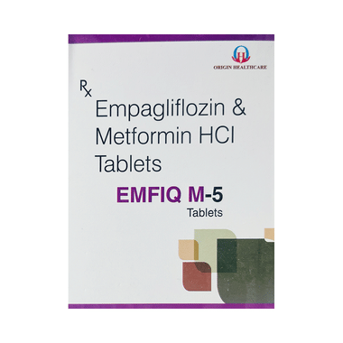 Emfiq M 5 Tablet should be taken with food at any time of day but you should try to take it at the same time every day. The dose will be decided by your doctor. Don’t stop taking it without asking your doctor. If you do, your blood sugar levels may increase and put you at risk of serious complications like kidney damage and blindness. This medicine is only part of a treatment program that should include a healthy diet, regular exercise, and weight reduction as advised by your doctor.