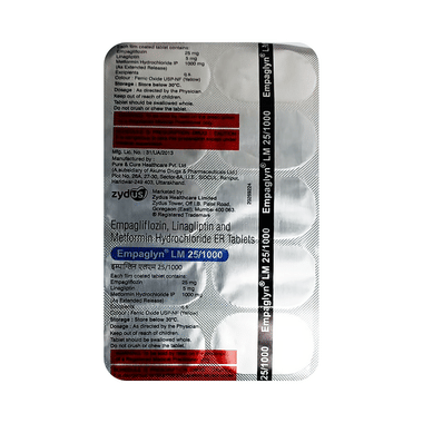 Take Empaglyn LM 25/1000 Tablet ER in the dose and duration prescribed by the doctor. Follow the dosing schedule given by your doctor. Skipping doses or stopping treatment without medical advice may lead to poor blood sugar control and a higher risk of complications. It works best when used along with proper diet and exercise.