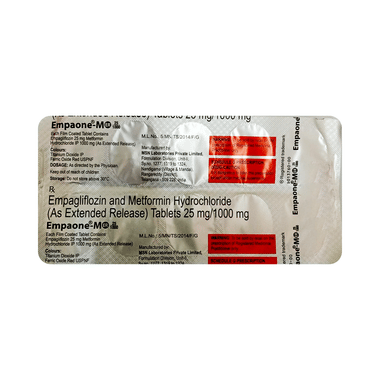 Empaone-M ER 25/1000 Tablet should be taken with food at any time of day but you should try to take it at the same time every day. The dose will be decided by your doctor. Don’t stop taking it without asking your doctor. If you do, your blood sugar levels may increase and put you at risk of serious complications like kidney damage and blindness. This medicine is only part of a treatment program that should include a healthy diet, regular exercise, and weight reduction as advised by your doctor.
