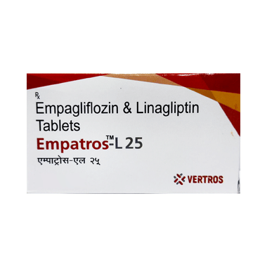 Empatros-L 25 Tablet is a combination medicine that helps control blood sugar levels. This medicine is used with diet and exercise to improve blood sugar control in adults with type 2 diabetes mellitus. It helps properly utilize insulin, thereby lowering the blood sugar level.