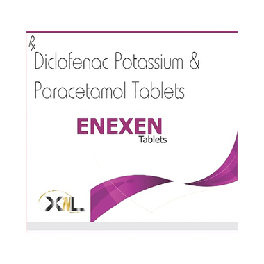 Enexen Tablet is a combination of two medicines: Diclofenac and Paracetamol. This medication helps in relieving pain and inflammation. It works by lowering the levels of chemical substances in the body that cause pain and inflammation. Paracetamol / Acetaminophen has an early onset of action which means that it takes very less time to start its action and it helps in relieving the symptoms till diclofenac starts working.