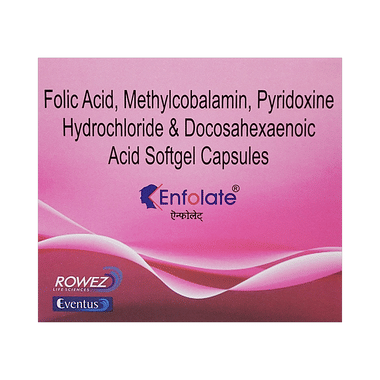 Enfolate Softgel Capsule is a combination of vitamins and mineral supplements prescribed to treat vitamin and other nutritional deficiencies. It ensures the proper growth and functioning of the body and strengthens immunity.`