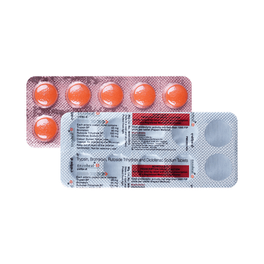 Composition: Trypsin (48mg) + Bromelain (90mg) + Rutoside (100mg) + Diclofenac (50mg)