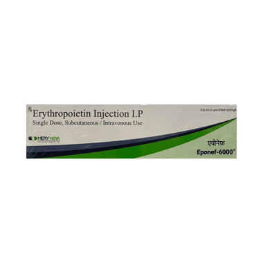 Eponef 6000 Injection is given by injection either under the skin or into a vein, which will be decided by your doctor. Usually, the injections are given by a nurse or doctor. The dose depends on your body weight and the cause of your anemia. Iron supplements both before and during treatment may make this treatment more effective. Eponef 6000 Injection needs to be stored in a fridge but used at room temperature.