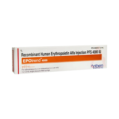 Epotrend 4000 Injection is given by injection either under the skin or into a vein, which will be decided by your doctor. Usually, the injections are given by a nurse or doctor. The dose depends on your body weight and the cause of your anemia. Iron supplements both before and during treatment may make this treatment more effective. Epotrend 4000 Injection needs to be stored in a fridge but used at room temperature.