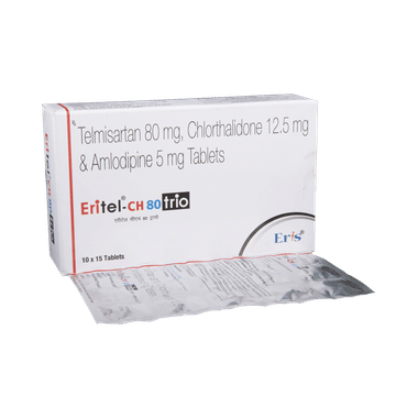 ERItel CH 80 Trio Tablet may be taken with or without food. The dose will depend on your condition and how you respond to the medicine. Try to take it at the same time each day. It is important to keep taking this medicine until your doctor tells you not to. It contains a diuretic (water pill) and will make you urinate more. Employ this medicine regularly to get the most benefit from it, even if you feel well. High blood pressure does not usually have symptoms, and if you stop taking it, your risk of heart attack or stroke may increase.