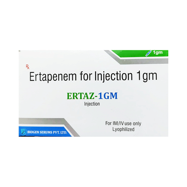 Ertaz 1GM Injection is commonly used to treat seriously ill patients admitted to the hospital. This medicine is given by drip or by direct injection into a vein, under the supervision of a doctor or a nurse. The dose will depend on what type of infection you have, where it is in the body, and how serious it is. You should keep on taking the injection for as long as you have been prescribed, even if your symptoms quickly improve. If you stop taking it too early the infection may return or worsen.