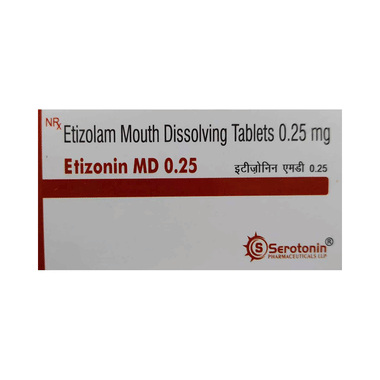 Etizonin MD 0.25 Tablet may be taken with or without food. However, take it at the same time each day, as this helps maintain a consistent level of medicine in the body. Take this medicine in the dose and duration as advised by your doctor, as it has a high potential for habit-forming. Finish the full course of treatment, even if you feel better. You should not stop this medication without talking to your doctor.