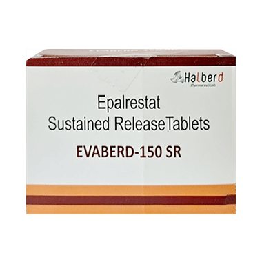 Evaberd 150 SR Tablet belongs to a group of medicines known as Aldose reductase inhibitors. It can be taken with or without food but you should try to take it at the same time every day. This will help you to remember to take it. The dose and how often you need it will be decided by your doctor so that you get the right amount to control your symptoms. It may take up to 3 months to get the full benefits of this medicine, but you should keep taking it regularly. Do not stop taking it without asking your doctor, otherwise, your condition may worsen.