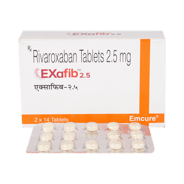 Find out detailed description, uses, directions of use, side effects, warnings and precautions, frequently asked questions about Exafib 2.5mg Tablet