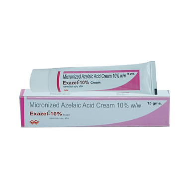 Exazel 10% Cream is used in the treatment of acne (pimples). It effectively relieves symptoms such as lumps, redness, and swelling associated with different forms of acne. It works by killing acne-causing bacteria.