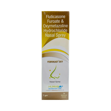 Febrikast Oxy Nasal Spray is a combination medicine used in the treatment of allergy symptoms, such as runny nose, stuffy nose, sneezing, watery eyes, and congestion or stuffiness.