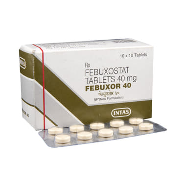 Febuxor 40 Tablet is used to treat gout in adults. It is mainly used in patients who did not respond to the treatment with allopurinol or who are not able to take allopurinol. Gout is a type of arthritis in which uric acid, a naturally occurring substance in the body, builds up in the joints. It causes sudden attacks of redness, swelling, pain, and heat in one or more joints.