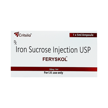 Feryskol Injection is generally given by a doctor or nurse. It is important to follow your doctor's instructions carefully and attend all scheduled doses to ensure the treatment works effectively. While on treatment, eating a balanced diet that includes iron-rich foods can also support recovery. Do not stop or skip injections without medical advice, even if you start feeling better, as completing the full course helps restore and maintain healthy iron levels.