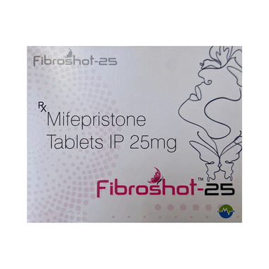 Fibroshot 25 Tablet is a medicine used in the treatment of uterine fibroids, noncancerous growths in the uterus that can cause heavy bleeding, pain, and pressure. It blocks the hormone progesterone, which fibroids rely on to grow, helping shrink them and ease symptoms like heavy bleeding and pelvic pain.