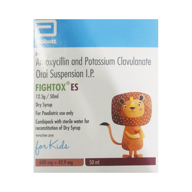 Fightox ES Dry Syrup is a combination of two medicines (amoxycillin and clavulanic acid) used to treat bacterial infections, such as tonsillitis, sinusitis, otitis media, respiratory tract infections, urinary tract infections, boils, abscesses, cellulitis, wound infection, bone infection, and oral cavity infections. The medicine works by killing the harmful bacteria that cause infections.