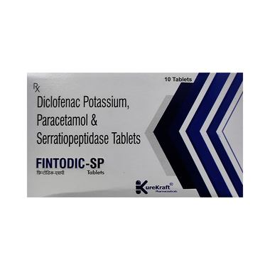 Fintodic-SP Tablet is a combination of three medicines: Diclofenac, Paracetamol, and Serratiopeptidase. This medication helps in relieving pain and inflammation. It works by lowering the levels of chemical substances in the body that causes pain and inflammation.
