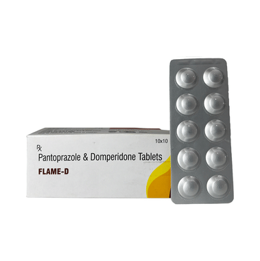 Flame-D Tablet is a medicine that is used to treat conditions like acid reflux disease (GERD), erosive esophagitis, gastritis, gastric and duodenal ulcers, and indigestion with symptoms like heartburn, bloating, and regurgitation. It works by lowering acid production and helping the stomach empty faster.