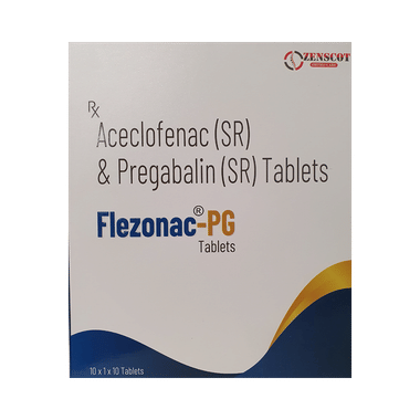 Flezonac-PG Tablet SR is a pain-relieving medicine. It is used in the treatment of neuropathic pain. It calms the damaged or overactive nerves by acting on the brain, thereby decreasing the sensation of pain. This way it improves your mood and reduces tiredness that can be caused by the pain.Flezonac-PG Tablet SR should be taken with food. This will prevent you from getting an upset stomach. You should take it regularly as advised by your doctor. Your doctor may change the dose and time between doses according to your pain level and your needs. Do not take more or use it for longer duration than recommended by your doctor.