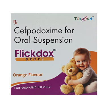 Flickdox Drops Orange is an antibiotic medicine used to treat bacterial infections in your body. It is effective in infections of the lungs (e.g., pneumonia), urinary tract, ear, nasal sinus, and throat. It kills bacteria, which helps to improve your symptoms.