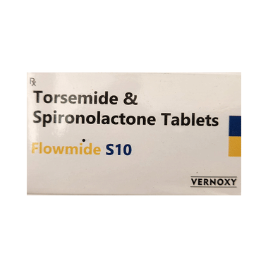 Flowmide S10 Tablet is a fixed-dose combination of torasemide (a loop diuretic) and spironolactone (an antagonist of aldosterone). Both are diuretics, and they help to remove excess fluid from the body. This medicine is prescribed for individuals with edema.