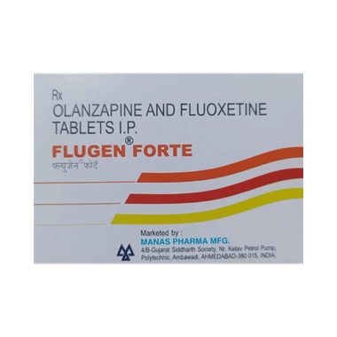 Flugen Forte Tablet is used to treat depression in bipolar disorder (bipolar depression) and treatment-resistant depression (when other antidepressants haven’t worked). It combines an antidepressant (fluoxetine) and an antipsychotic (olanzapine) to help improve mood, sleep, appetite, and energy.